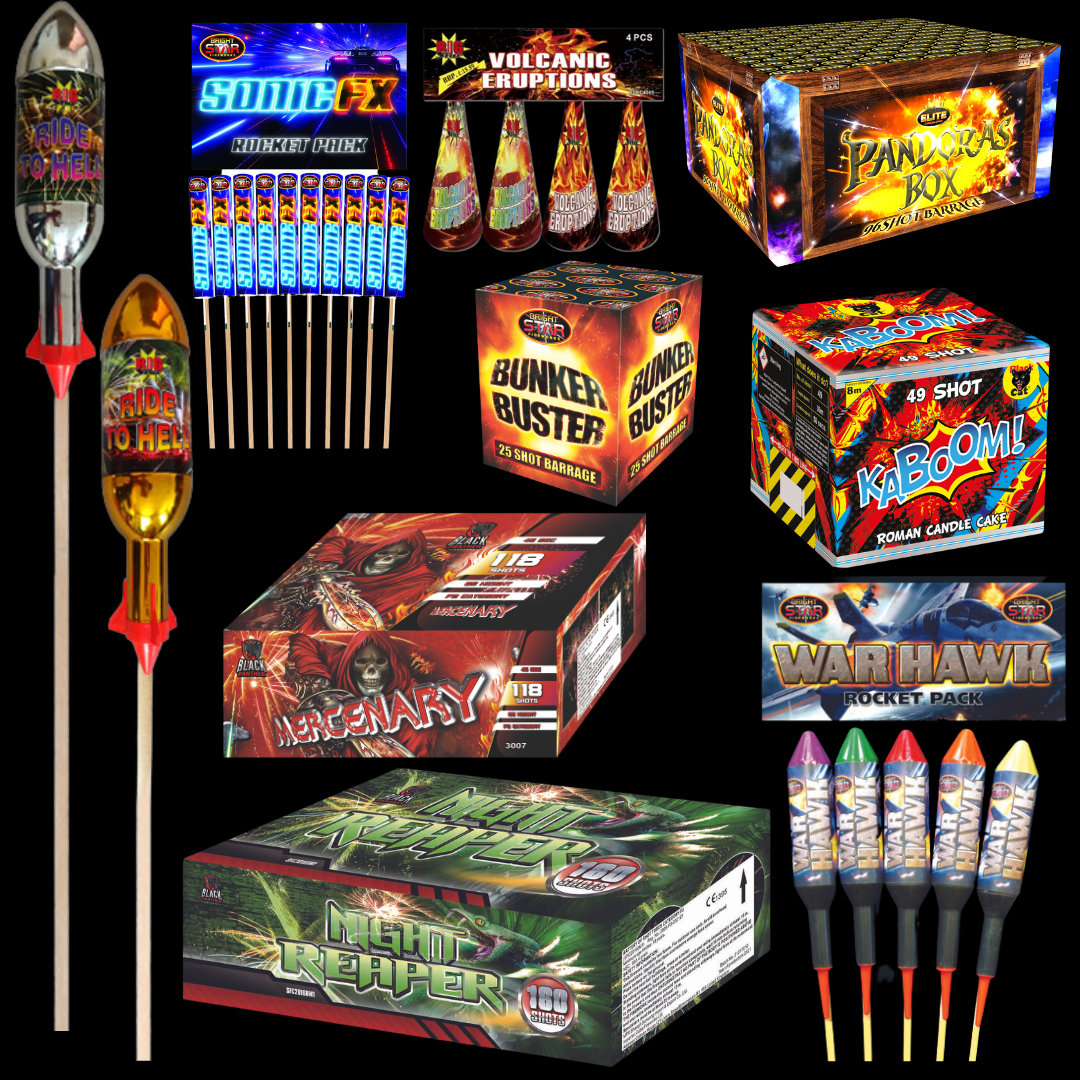 This is the ultimate Coventry Fireworks King package deal. Perfect for birthdays, wedding and parties. Specially hand picked for you by the king himself! You've got cakes, rockets, fountains...the works!
